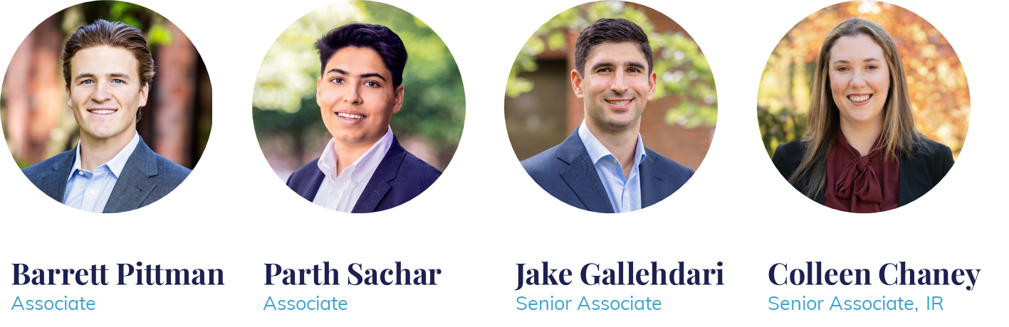 Argosy Private Equity (“Argosy”) is pleased to announce the promotions of Barrett Pittman, Parth Sachar, Jake Gallehdari, and Colleen Chaney. Developing talent and recognizing achievement are core to our culture, and we are proud to celebrate the continued growth and contributions of these individuals.